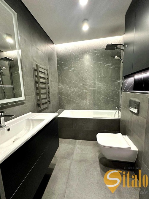 Ванна з великоформатною плиткою, підігрів рушників.