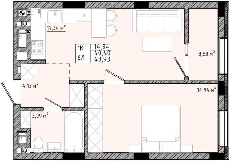 • Загальна площа 43.93 м2