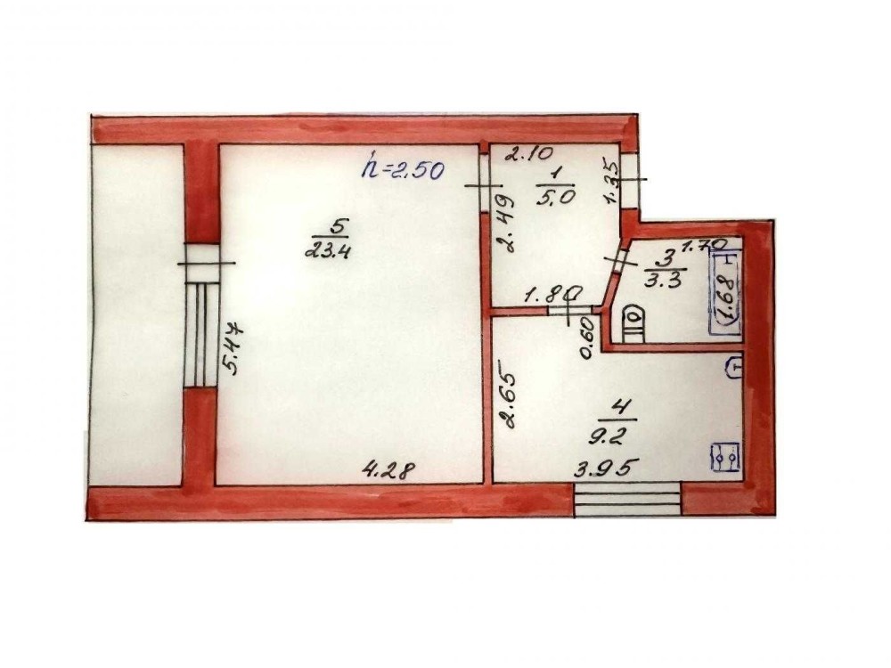 • Санвузол — 3,3 м²