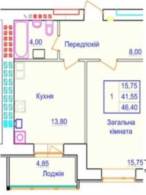 • Загальна площа 46.4 м2