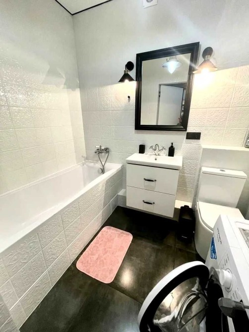 Квартира укомплектована всією технікою та меблями: пральна машина, бойлер, сушарка, варильна поверхня, холодильник, мікрохвильова піч, телевізор.