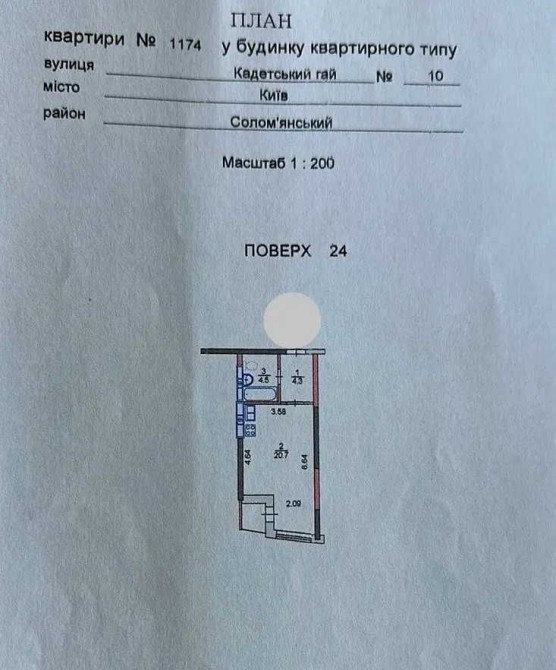 Площа квартири 32 м2, поверх 24/26. Будинок монолітно-каркасний