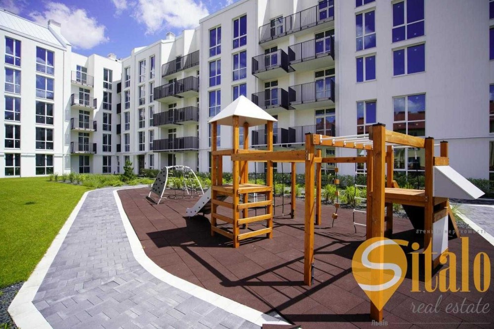 Внутрішній двір з сучасними інтерактивними дитячими ігровими майданчиками, зеленими зонами та куточками для занять спортом буде доступний тільки для мешканців.