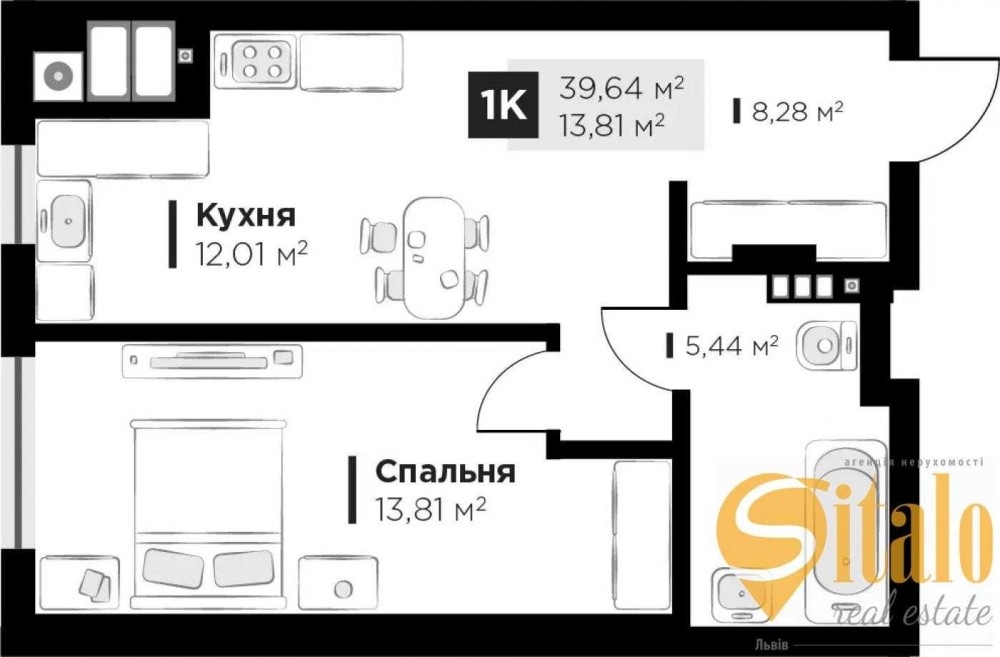Загальна площа: 39.64 м²