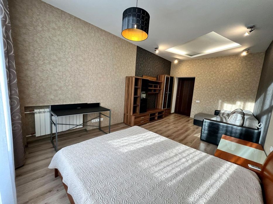 Холодильник, мікрохвильова піч, плита з духовкою, бойлер, електрочайник, пральна машина, диван, ліжко з ортопедичним матрасом, журнальний стіл, кондиціонер, комора, велика шафа-купе, засклений балкон, і т.д.