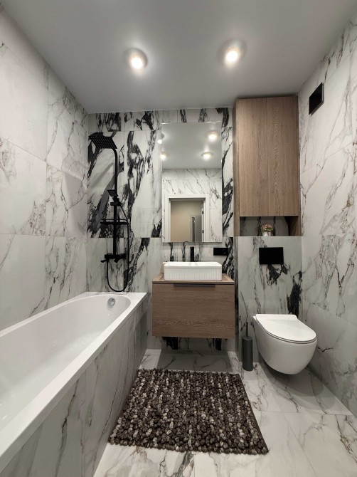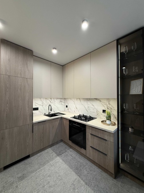 Вся необхідна техніка: холодильник, посудомийна машина, кондиціонер Samsung, газова плита, духова шафа Bocsh.