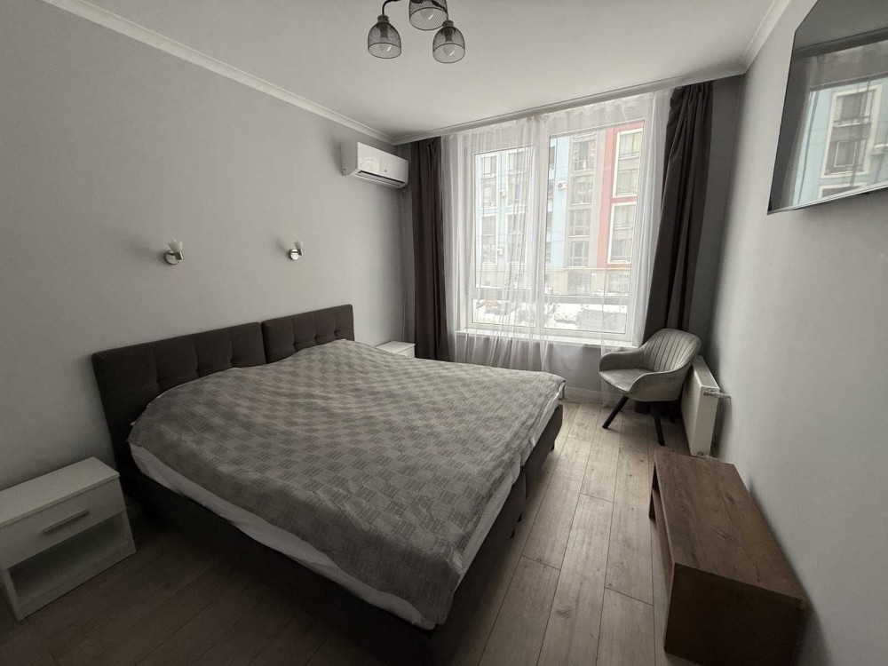 Квартира розташована на комфортному 2-му поверсі 9-поверхового будинку, не кутова, що забезпечує тепло та тишу. По плануванню: ізольована простора спальня, суміжний санвузол, простора вхідна група з функціональною шафою, та простора кухня, з панорамними вікнами та нішею, де можна облаштувати зону відпочинку чи маленький кабінет. Облаштована всією необхідною технікою: кондиціонер, посудомийка, все є.