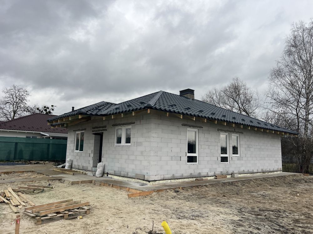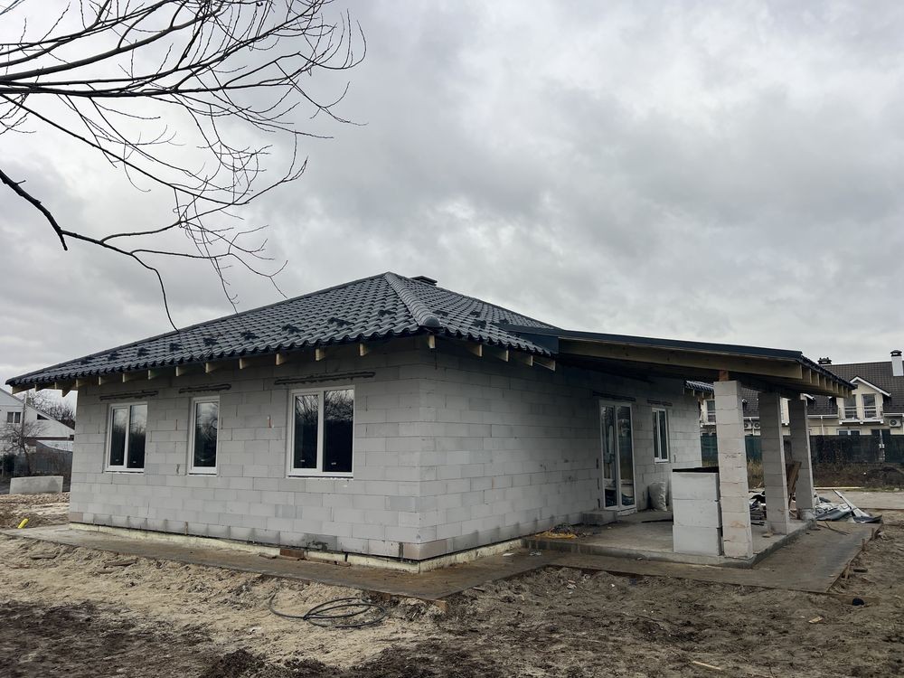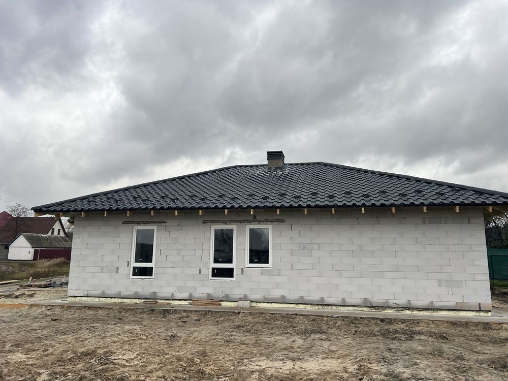 Продається стильний одноповерховий будинок загальною площею 105 кв з трьома окремими кімнатами, хозяйська спальня з с/в та гардеробом. Ділянка 5,5 соток. Заведено в дім 13 кВт, інтернет , закопані 4 кільця з переливом , по двору зроблена дринажна система водовідведення, залита бетонна площадка під автомобілі, білі металопластикові вікна. Можливе підключення газового опалення.