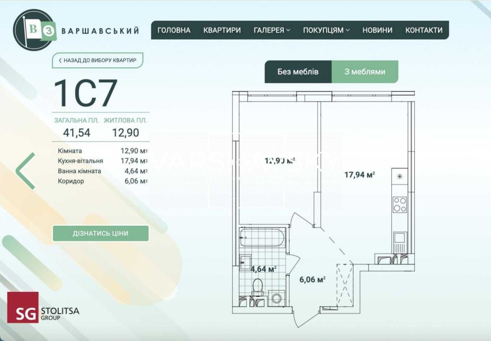 • Площа кухні 17.94 м2