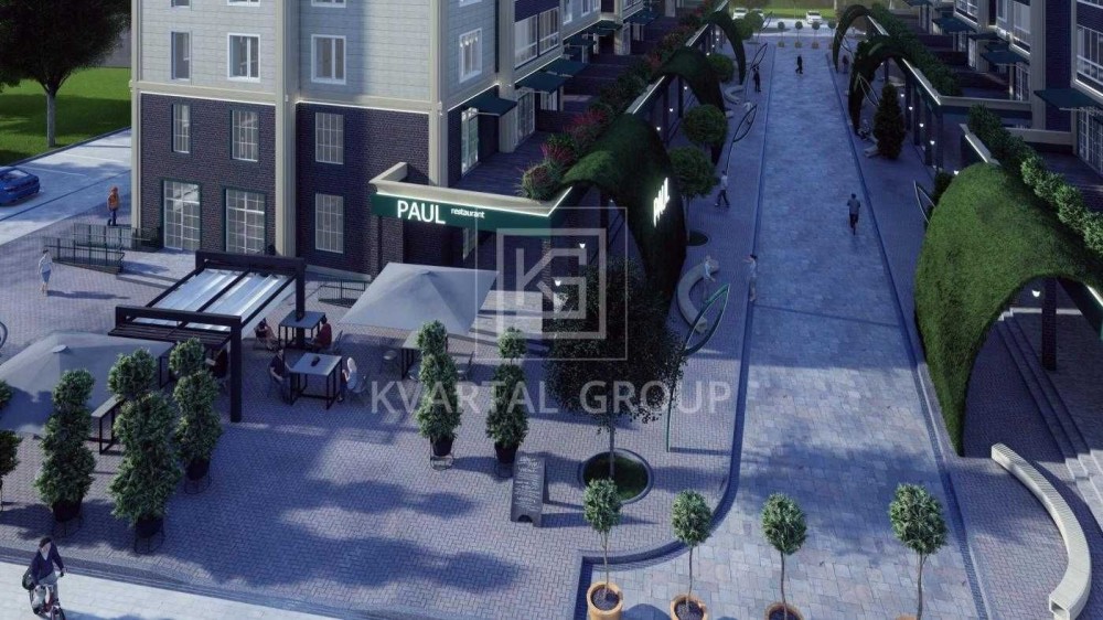 • Сквер площею 5 га з прогулянковими та біговими доріжками, зонами відпочинку, вигулом для собак