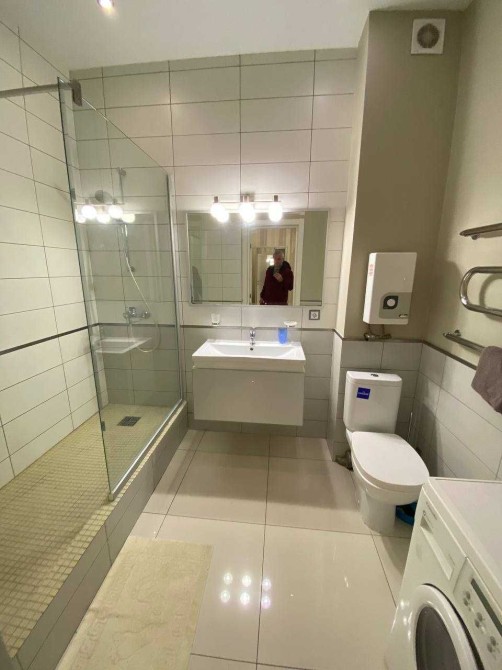 Простора ванна кімната: великий душ, сучасна сантехніка, пральна машина, підігрів рушників, проточний водонагрівач все нове та бездоганно чисте.