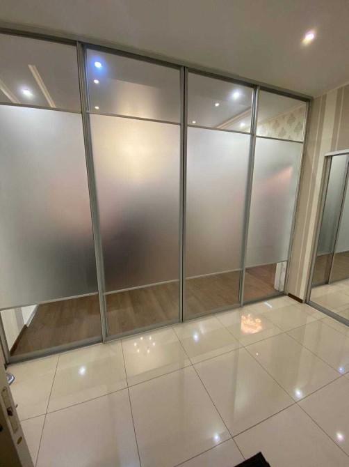 Велика шафа-купе з матовим склом ідеальне місце для зберігання.