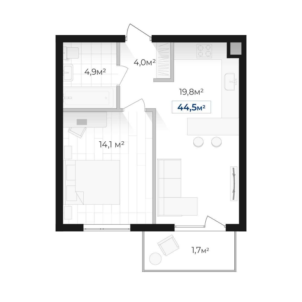 • Загальна площа 44.5 м2
