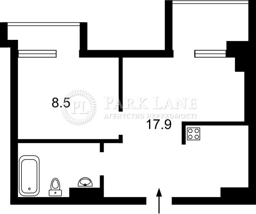 • Загальна площа: 34,0 м²