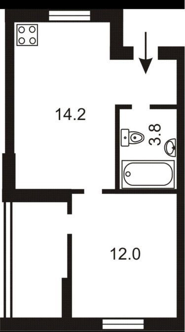 Загальна плоша 40м2, спальня 12м2, кухня -вітальня 14м2, санвузол, лоджія 5,5м2.