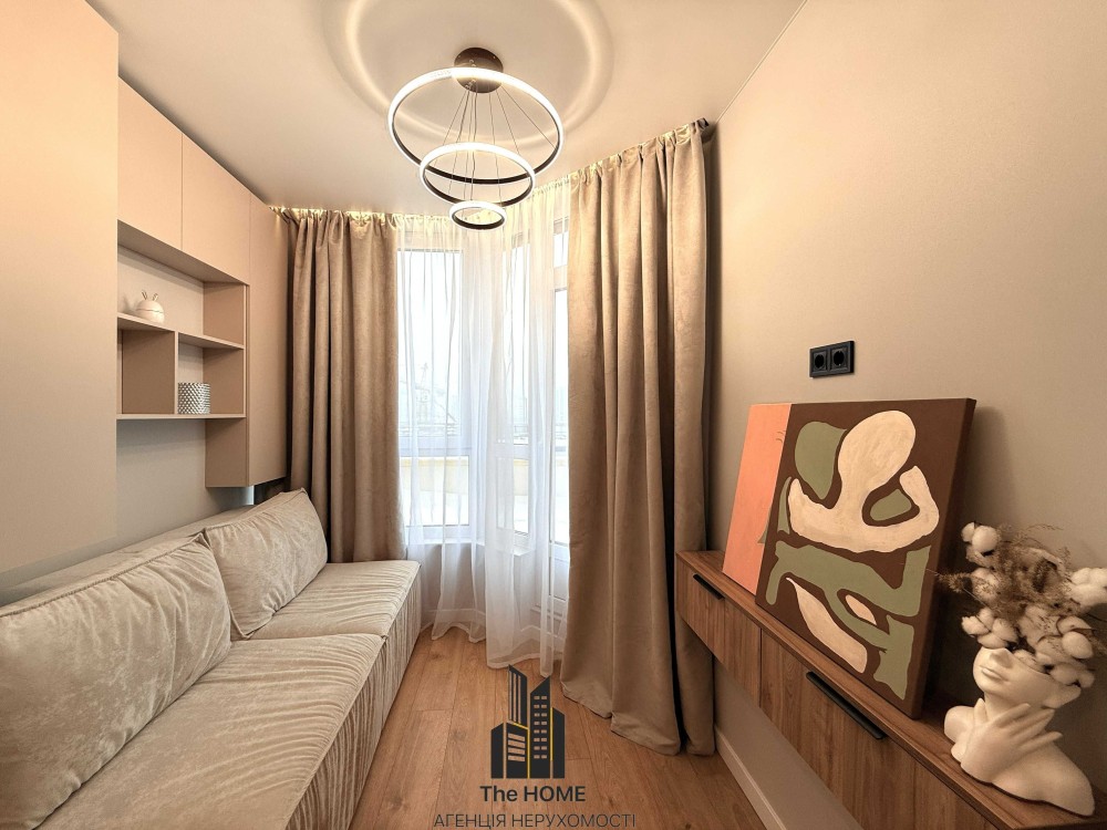 Кухня-вітальня з сучасною технікою, затишна спальня з великим ліжком, куточком краси та гардеробною, просторий коридор з вмісткою шафою, стильна ванна кімната та інтегровані системи зберігання забезпечують максимальний комфорт проживання. Квартира повністю готова до заселення та не потребує жодних додаткових вкладень.