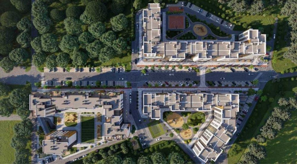- Облаштування прибудинкової території з яскравими дитячими майданчиками та зонами відпочинку;