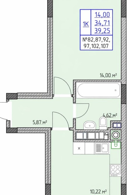 • Загальна площа 39.25 м2