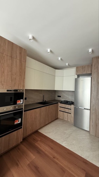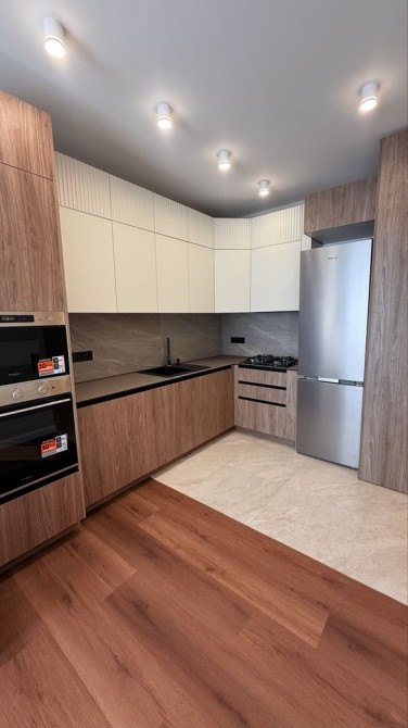 Кухня і всі меблі від меблевої студії, уся фурнітура Blum, фасади мдф фарбований та фрезерування, приховані ручки, встановлена уся техніка: мікрохвильова, духовка, посудомийка, варильна поверхня газова, витяжка прихована. ОПАЛЕННЯ- Газовий котел.