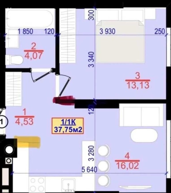 - Площа: 37,75 м²