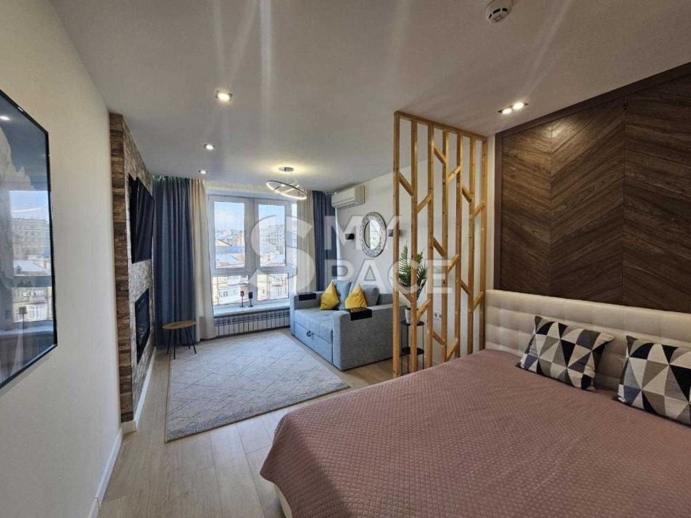 Панорамні вікна в підлогу, дуже затишна та приємна квартира. Сучасний ремонт, укомплектована якісними меблями та технікою: велике двоспальне ліжко зі зручним матрацом (memory foam), розкладний ортопедичний диван на 2 місця, окрема вбиральня, пральна машина, кондиціонер, телевізор, посудомийна машина, мікрохвильова піч.