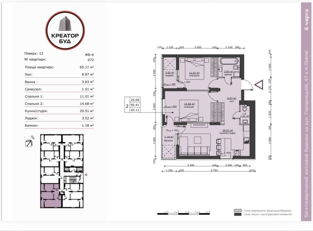 • Загальна площа 65.11 м2