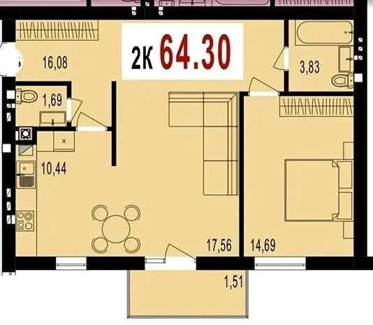 • Загальна площа 64.3 м2