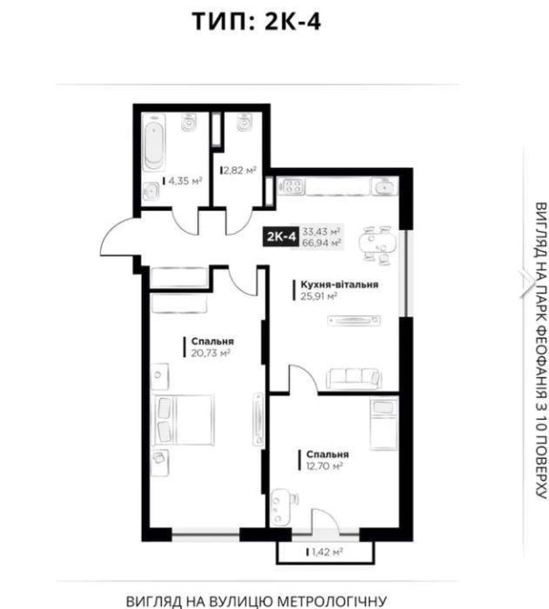 • Площа кухні 25.91 м2