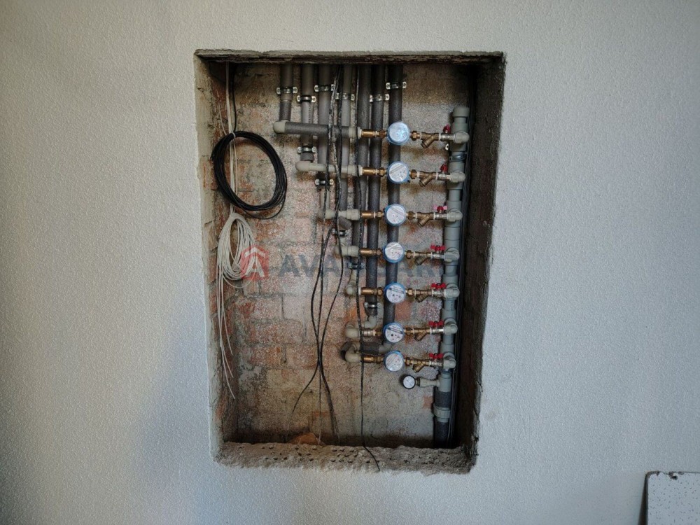 У квартирі зроблена стяжка від забудовника з можливістю проведення труб для водяного підігріву підлоги, встановлені панорамні вікна, газовий лічильник, решта лічильників - виведені на коридор.