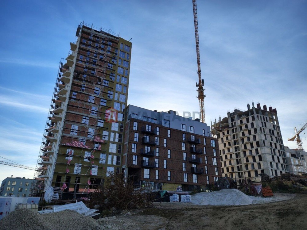 Здача запланована на кінець 2025 року (секція готова, ведуться оздоблювані роботи всередині, встановлені вхідні двері до квартир, плитка на підлозі в під'їзді, стіни ще не оздоблені, ліфт ще не встановлено)