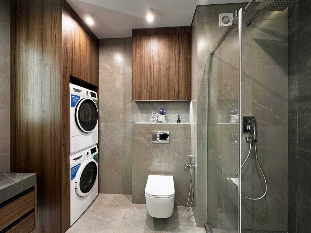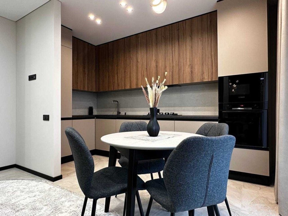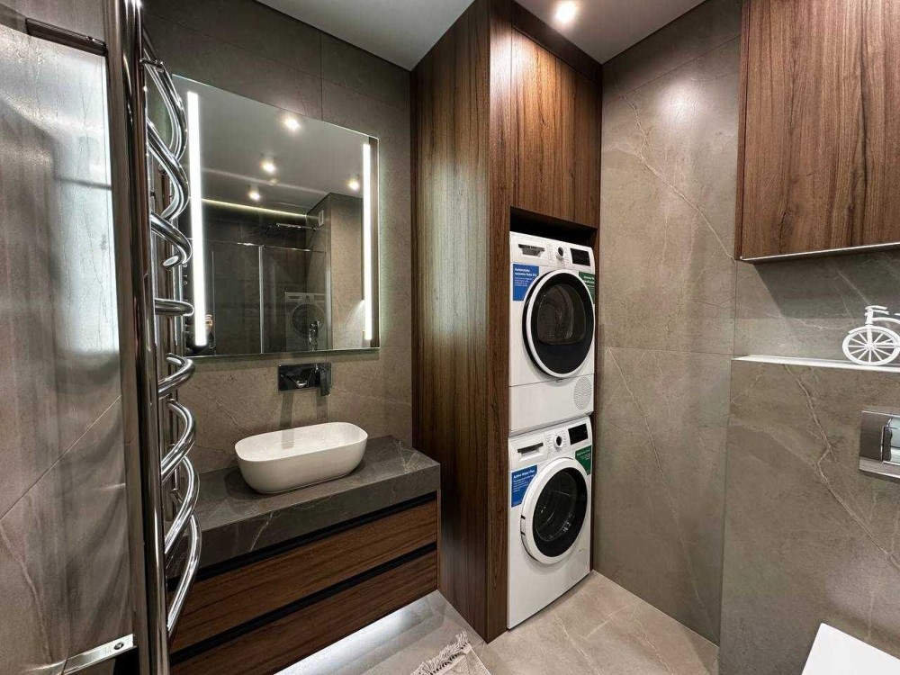 - Квартира повністю укомплектована (вмонтований холодильник, духова та мікрохвильова піч, є пральна та сушильна машина, посудомийка, кондиціонер та тепла підлога: кухня, коридор, санвузол)