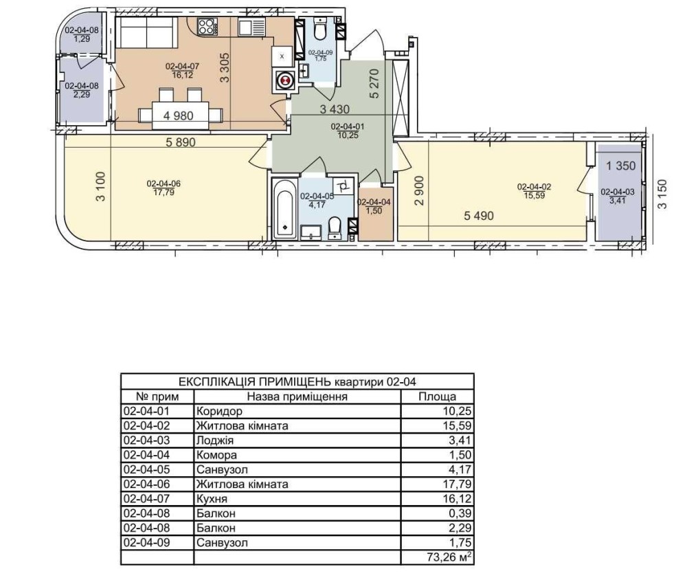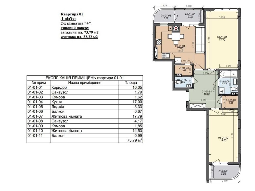 • Загальна площа 74 м2