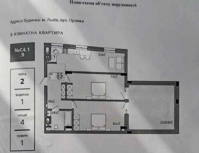 агальна площа квартири - 68.4 кв. м. Патіо - 26 кв. м. Індивідуальне газове опалення. Внутрішній дворик без авто. Здача будинку планується на 4-й квартал 2025 року. Гарна транспортна розв'язка в будь-який кінець міста. До центру міста - 15 хвилин на авто.