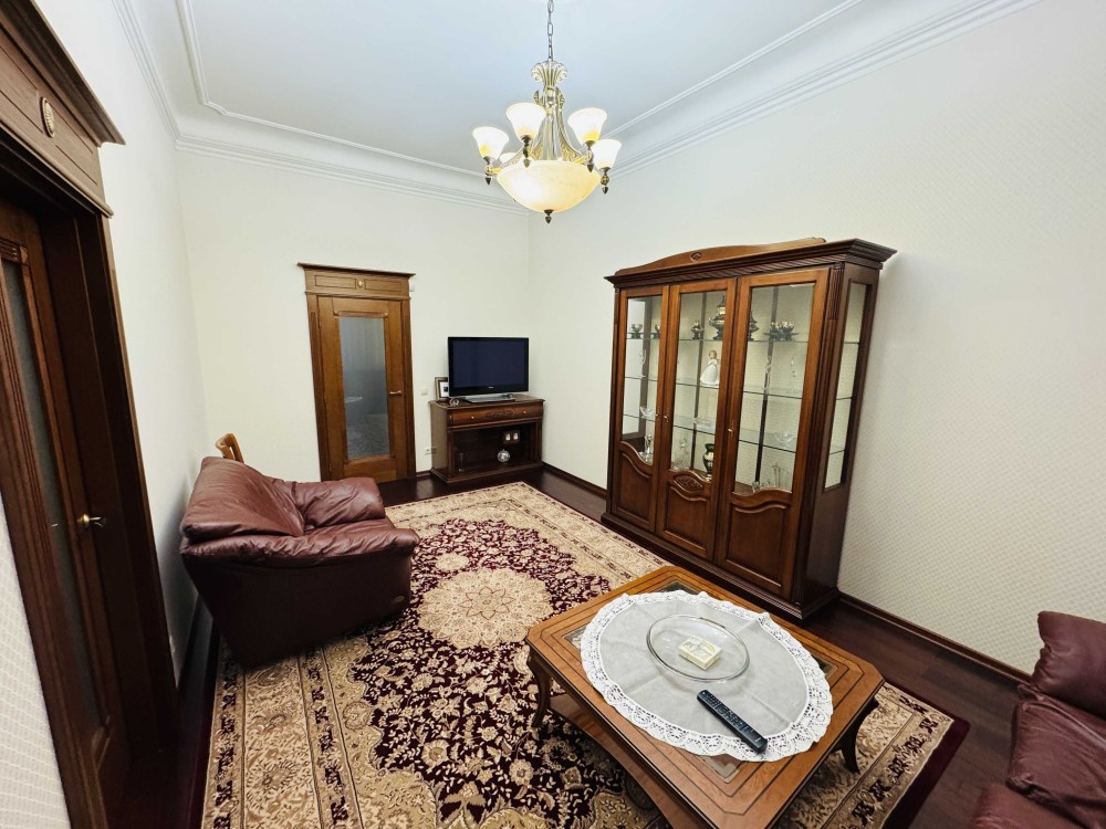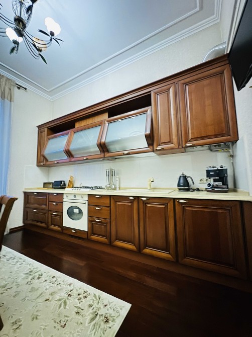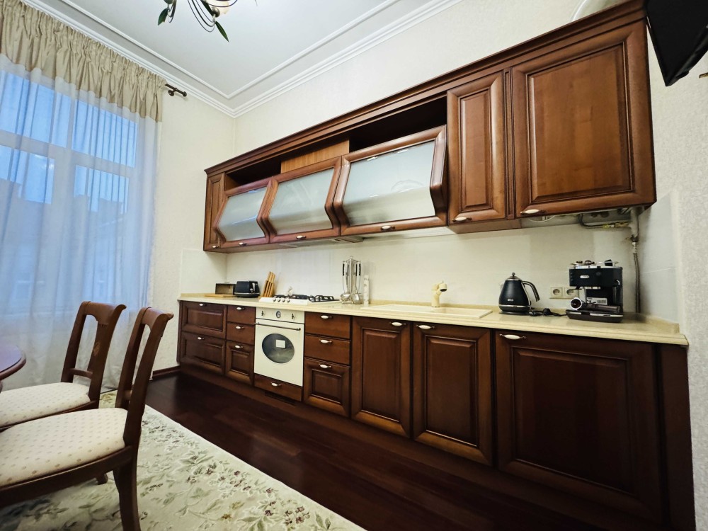 Продаж двокімнатної квартири у центрі міста по вул. Дорошенка. Загальна площа 67 м.кв., житлова – 44 м.кв., кухня – 15 м.кв., висота стелі 3 М (оригінальна ліпнина). Новий якісний ремонт, італійські меблі, нова побутова техніка, індивідуальне опалення (двоконтурний котел), домофон, сигналізація, броньовані двері.