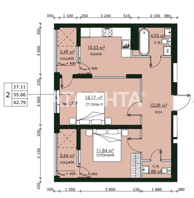 • Загальна площа 62.79 м2