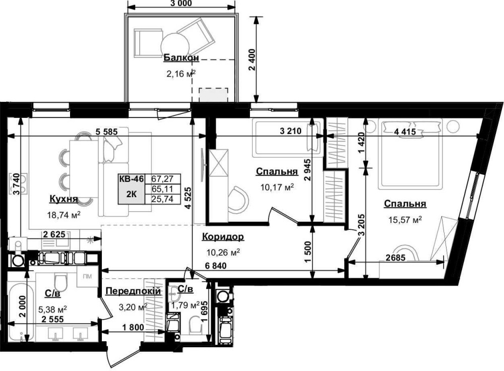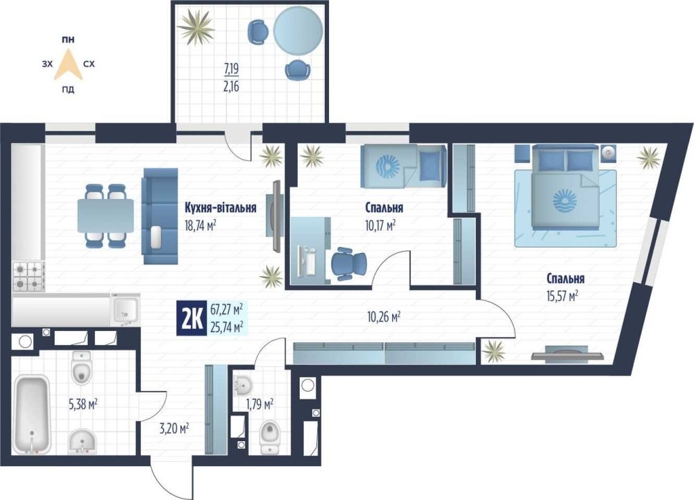 • Загальна площа 67.27 м2
