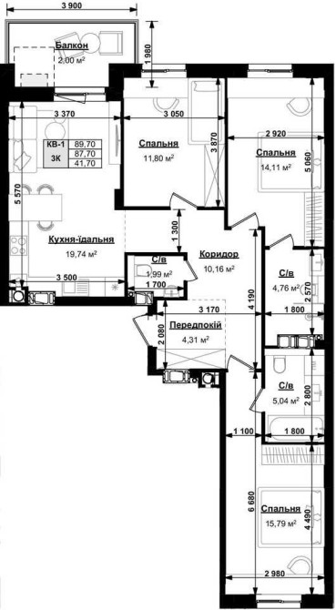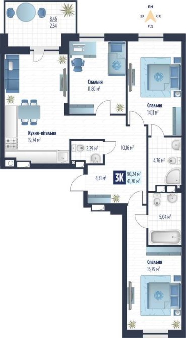 • Загальна площа 90.24 м2