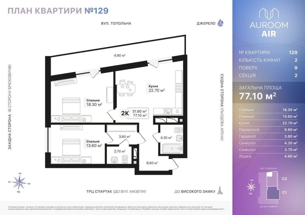 Продаж 2-кім квартири з неймовірним виглядом в ЖК Auroom Air.