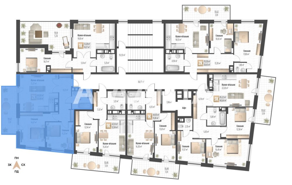 • Загальна площа 64.6 м2
