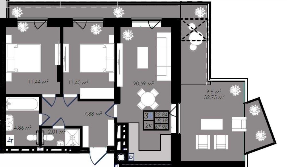 • Загальна площа 68 м2