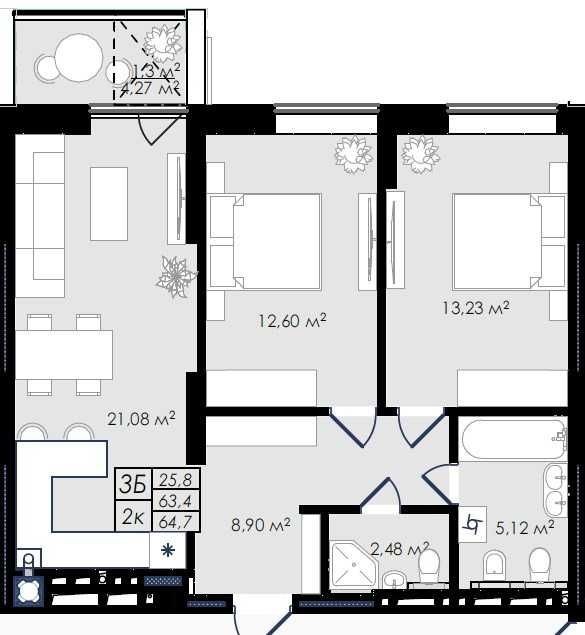 • Загальна площа 64 м2
