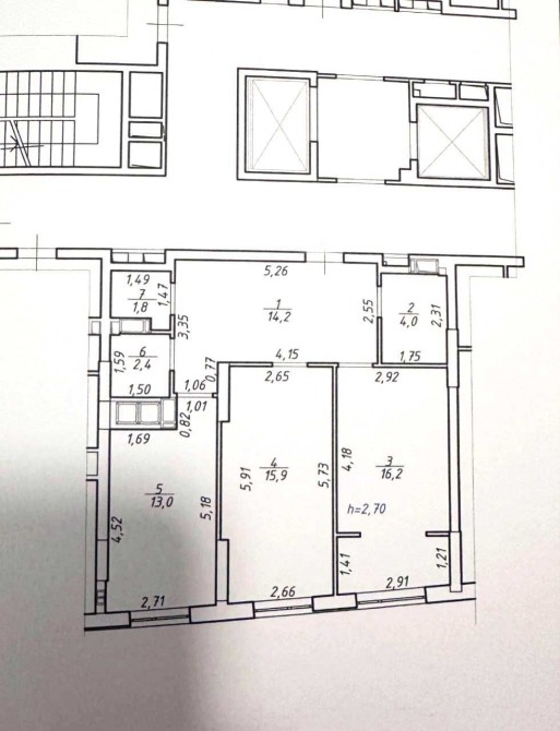 Висота стелі 2.7м.
