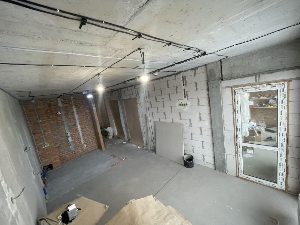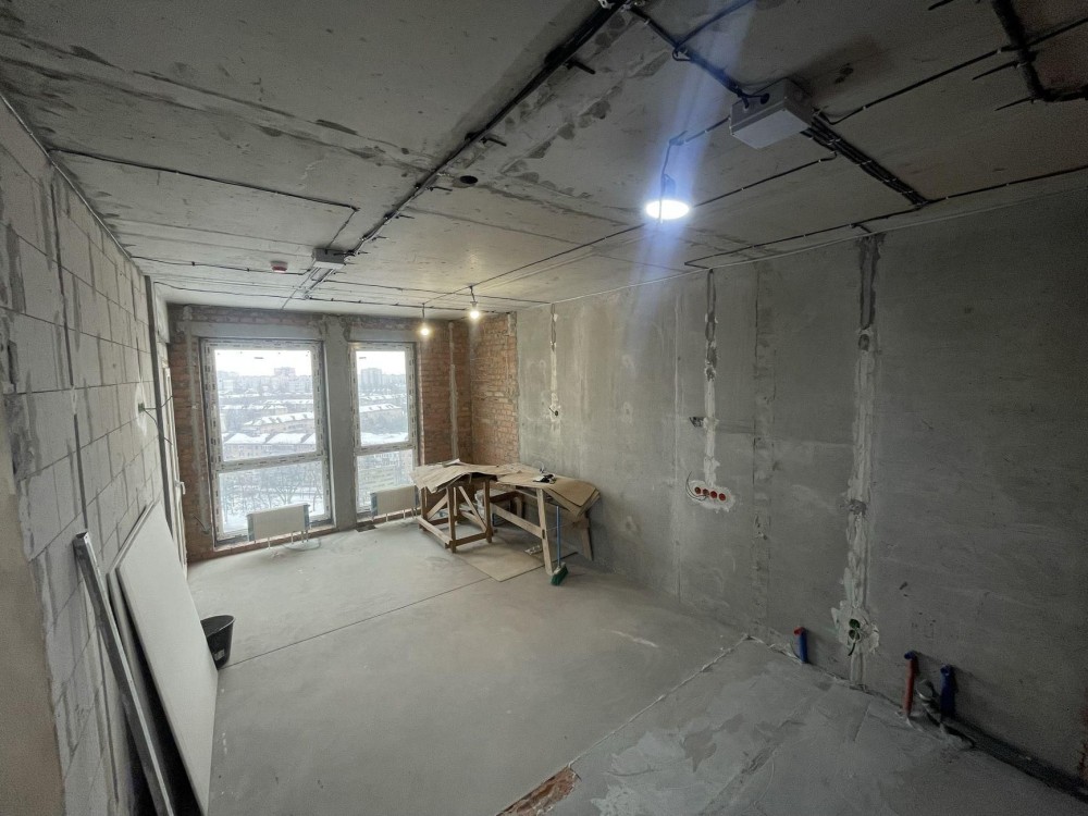 встановлена сантехнiка, залиті стяжки, встановлено тепловий лічильник на опалення, двозонний лічильник на лектроенергiю
