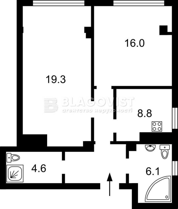 • Площа кухні 8.8 м2