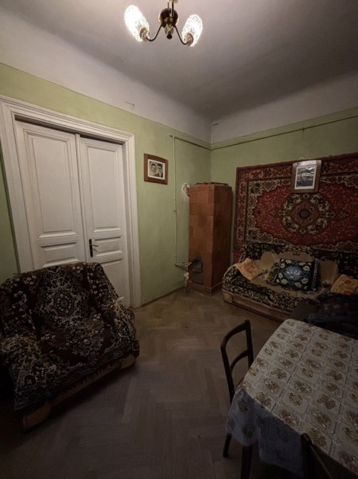 Квартира розташована на високому першому поверсі . Вхід парадний в коридор . Кімната прохідні , світлі і теплі . Велика кухня з вікном , вана і санвузол роздільні . Вікна виходять у затишне подвірʼя .
