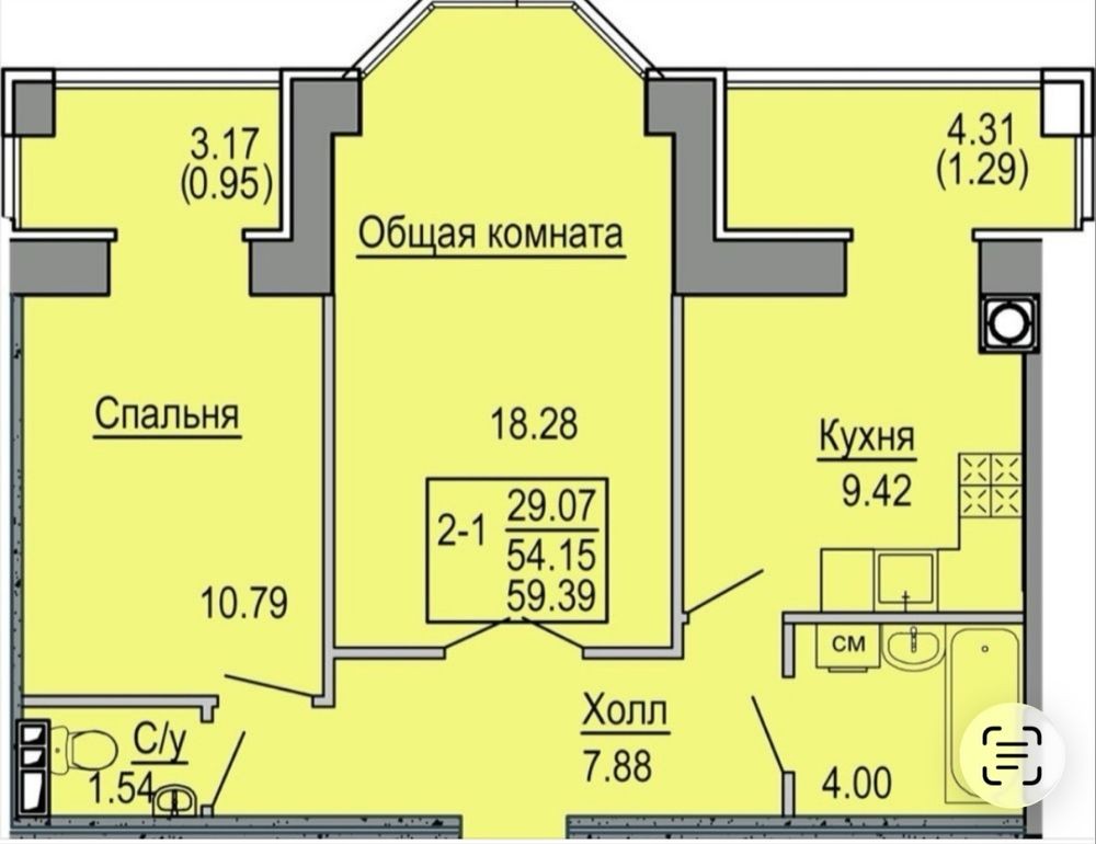 • Загальна площа 59 м2