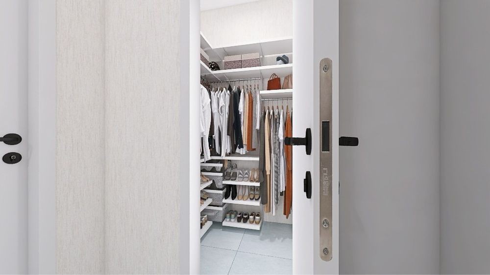 Кухня, 2 окремі кімнати та гардеробна.