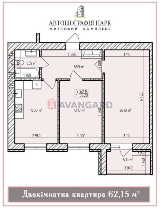 • Загальна площа 62 м2