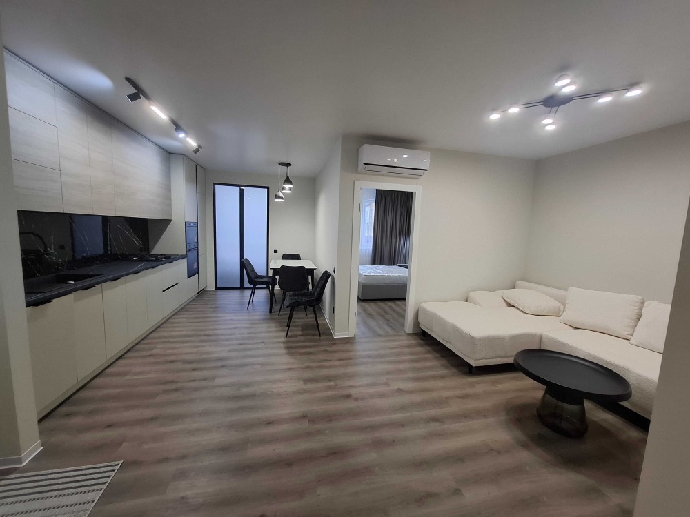 Квартира складається з кухні-вітальні, лоджії, двох спальнь, ванної кімнати та гардеробної.