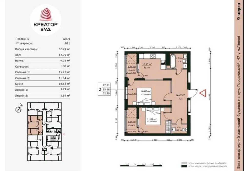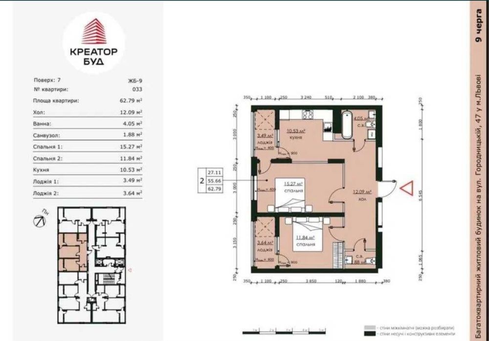 • Загальна площа 62.7 м2